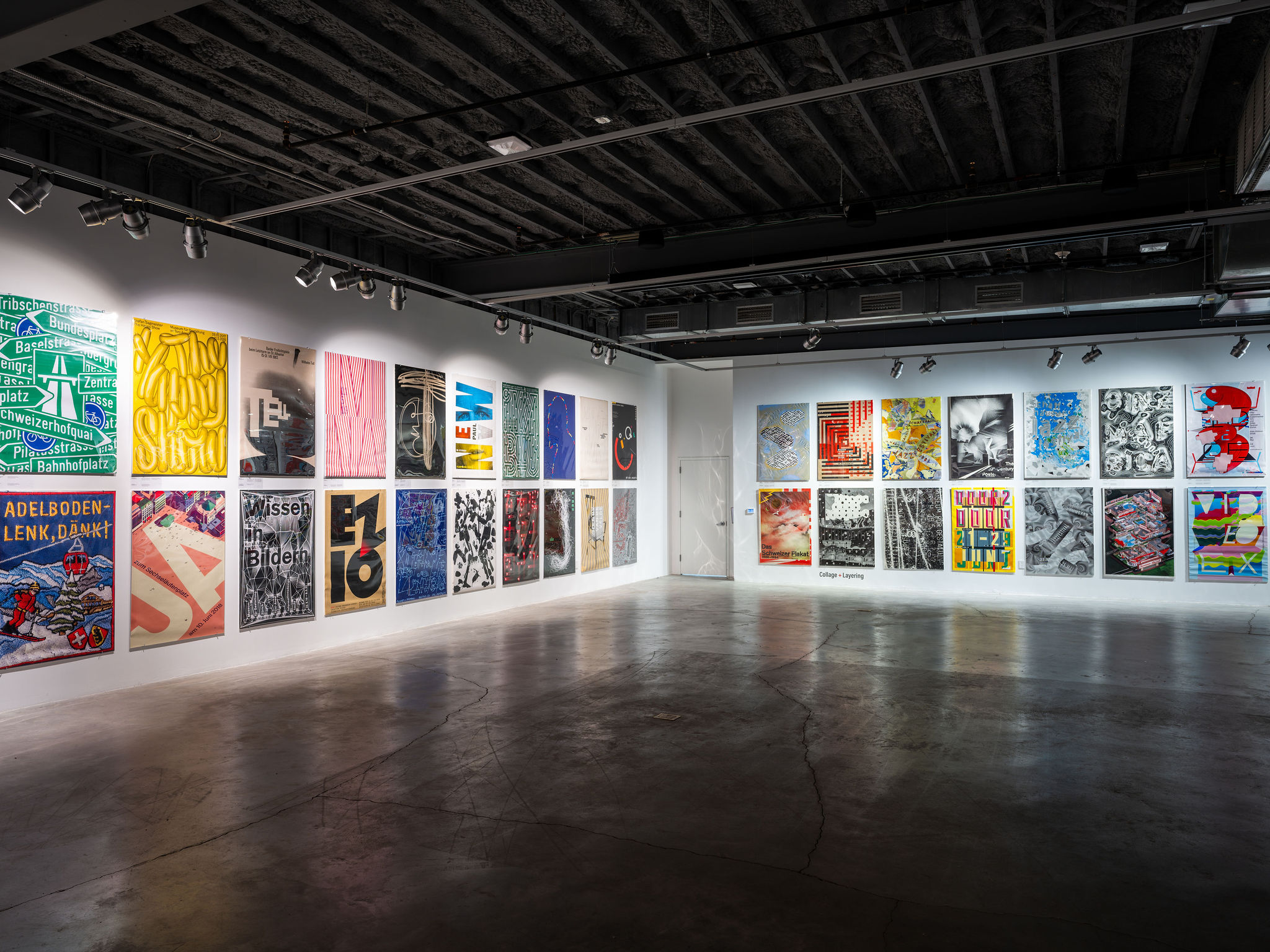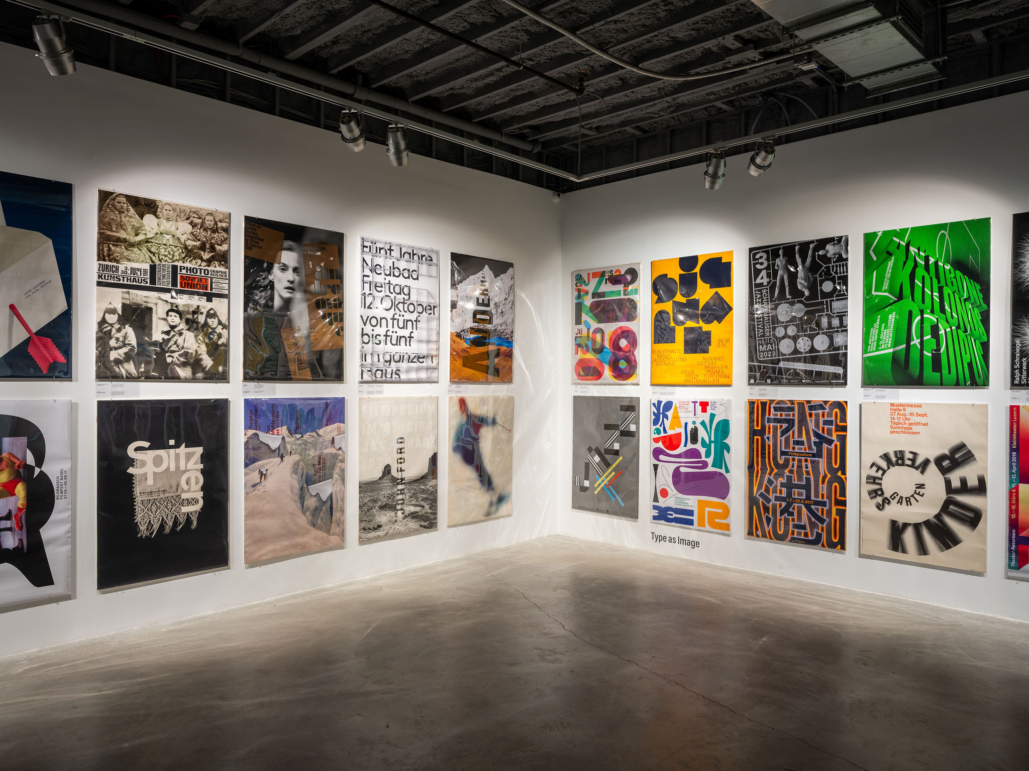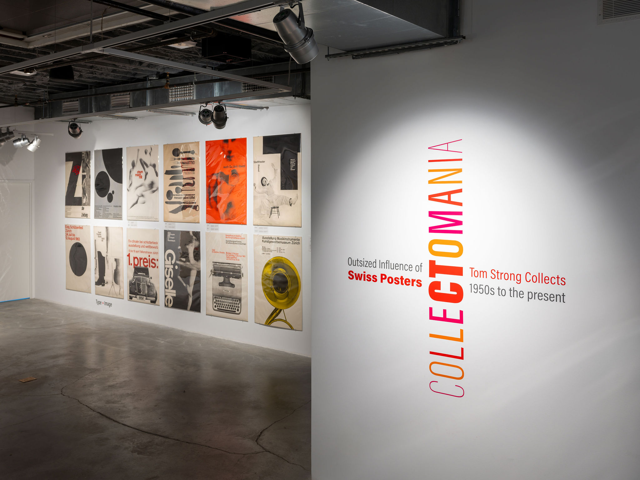 The poster as a large, public, graphic form has held its prominent place throughout the history of design. Tom Strong’s vast collection of Swiss posters, accumulated over six decades, spans the mid-century to today. His archive includes diverse and boundary-breaking visual strategies employed through inventive uses of type and typography, image-making, layering and collage. The posters illustrate myriad expressions in style, subject matter and ever-evolving technologies. Strong’s posters showcase both the outsized influence of Swiss design as well as the contemporary experimentation that builds on that legacy. Seeing the posters fill the gallery walls is pure visual delight.