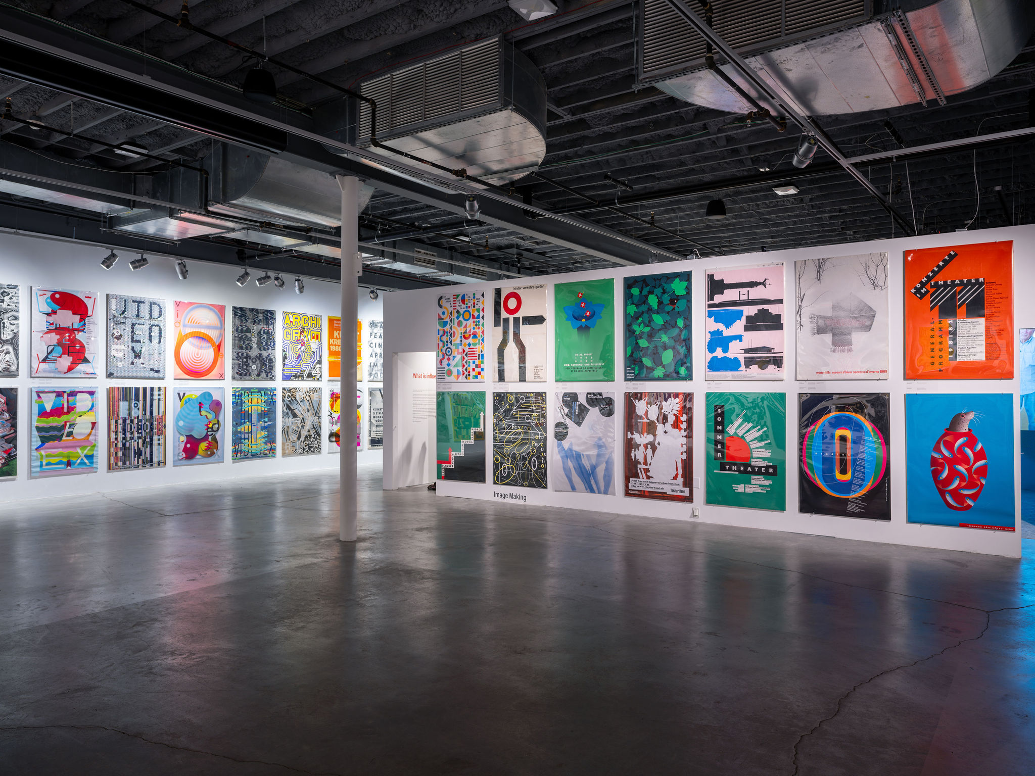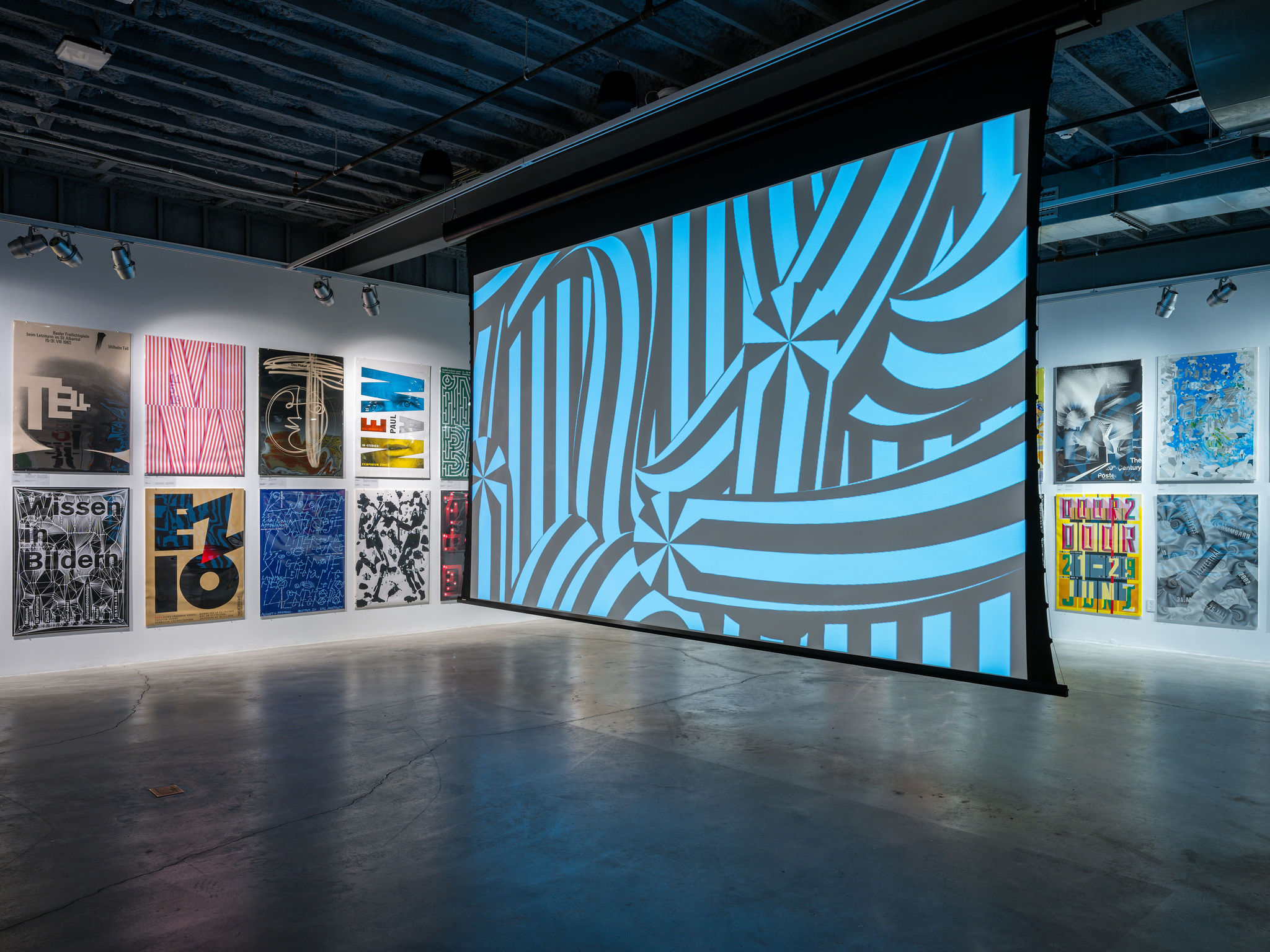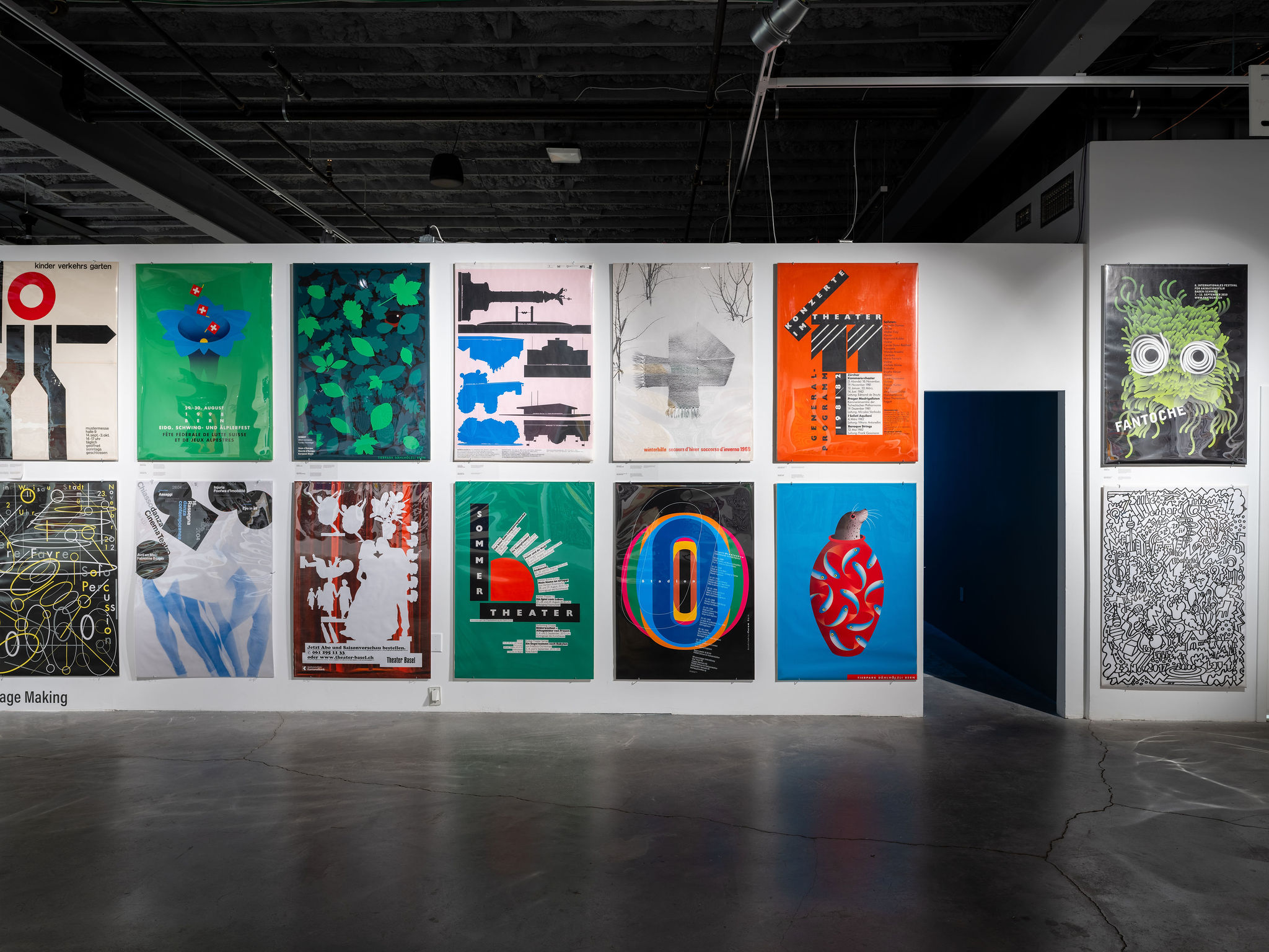 The poster as a large, public, graphic form has held its prominent place throughout the history of design. Tom Strong’s vast collection of Swiss posters, accumulated over six decades, spans the mid-century to today. His archive includes diverse and boundary-breaking visual strategies employed through inventive uses of type and typography, image-making, layering and collage. The posters illustrate myriad expressions in style, subject matter and ever-evolving technologies. Strong’s posters showcase both the outsized influence of Swiss design as well as the contemporary experimentation that builds on that legacy. Seeing the posters fill the gallery walls is pure visual delight.