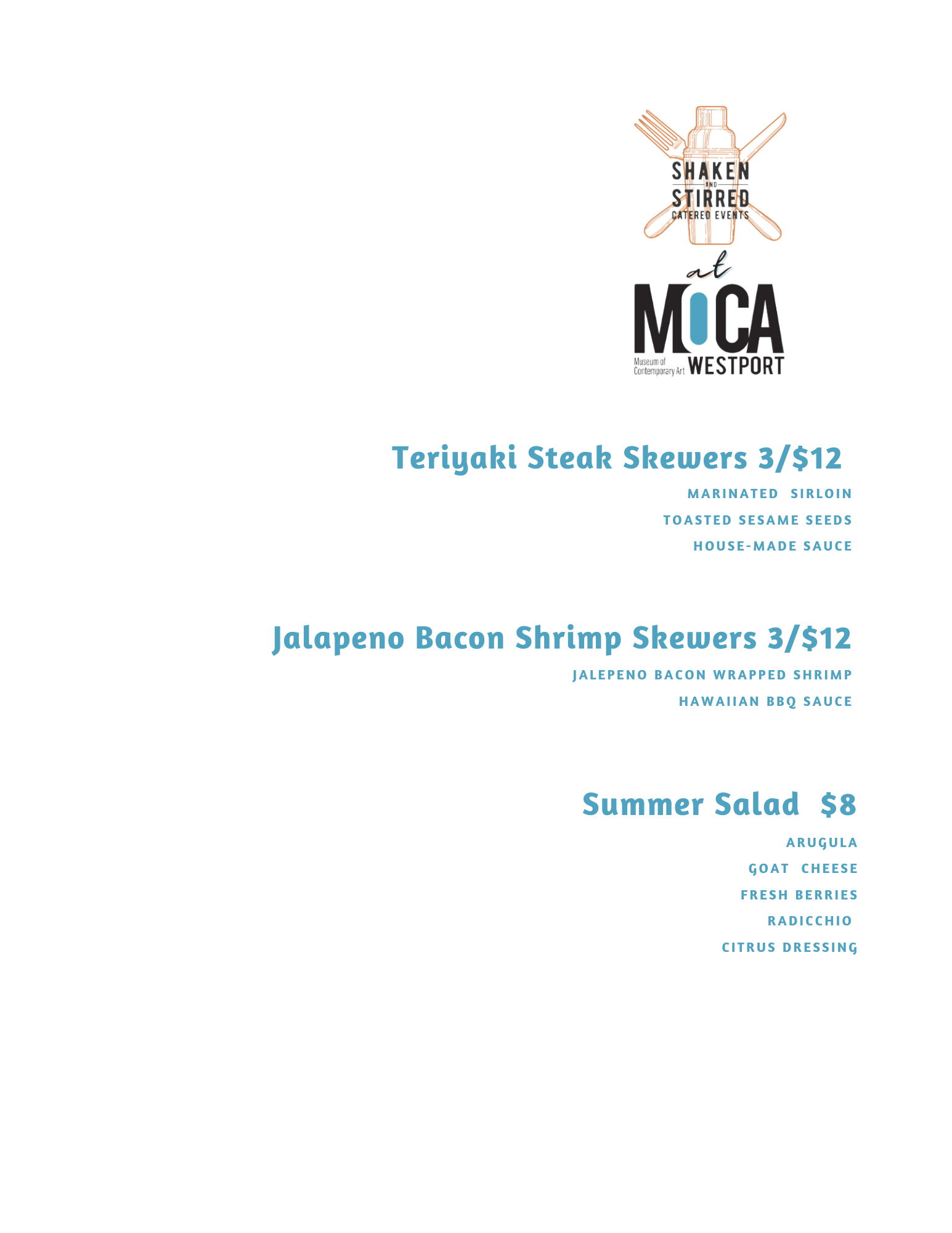 Dinner Menu for Adam Tendler