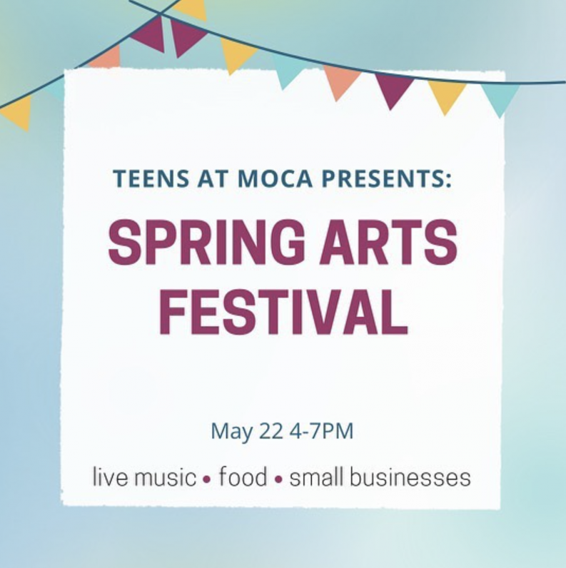 ALL TEENS WELCOME! Teens at MoCA organization welcomes all teens to join them at a free Spring Arts Festival at MoCA on May 22 from 4 – 7 PM. Enjoy a food truck, live music by teen bands, and check out local teen-run art businesses! Follow Teens at MoCA on Instagram to learn more.
