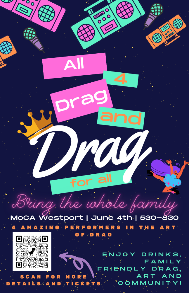 This promises to be a night the whole family will remember and enjoy! Come join Westport Pride at MoCA to welcome in Pride month and celebrate the art of drag. We hope to see all of you at what will be a staple in our community Pride celebration for years to come.
