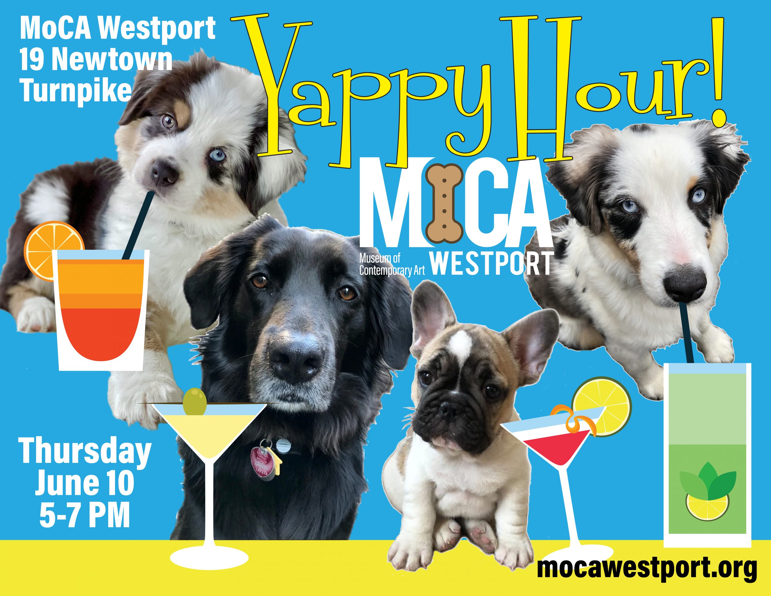 Special thanks to our Yappy Hour sponsors, Choice Pet, Bespoke Veterinary Services and Canine Company, and to our community partners, PAWS and Westport Animal Shelters Advocates (WASA). Please consider a donation of unopened food or treats to support these local rescue organizations.