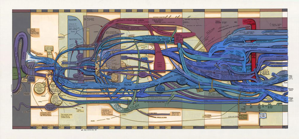 Shelley considers his diagrammatic timelines as representations of these narratives. He continues, “Facts are like dots on a graph. The narrative is the curve that connects them, that gives isolated data points meaning, and gives meaning shape . . . As actors in the world, we need a worldview, and a worldview requires construction. Narratives are what we construct – they are the basic building blocks for organizing our outlook and interpreting the world.”